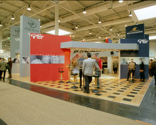 Messestand der Firma Amorim während des Messebetriebs - aufgenommen mit einem 1:3,5/28 mm-Shiftobjektiv (auf KB-Diafilm)