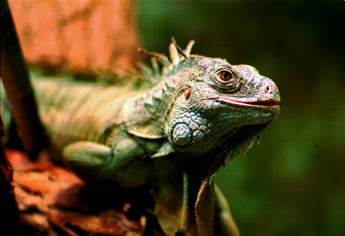 Aufnahme von einem Reptil - aufgenommen in einem Zoo mit 1:1,8/135 mm-Teleobjektiv (auf KB-Negativfilm)